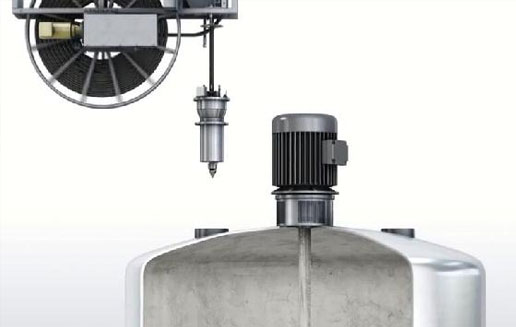 釜罐清洗的核心內容,是采用專用的執行機構,將清洗頭送入罐內的各清洗點位進行清洗。針對具有攪拌槳的容器進行清洗時,可以利用攪拌槳,設置固定清洗頭。并通過人工轉動攪拌槳驅動電機的扇葉,帶動攪拌槳緩慢轉動,實現半自動清洗作業,攪拌槳每旋轉360°后,需要反向旋轉360°,避免高壓軟管在容器內纏繞扭結。